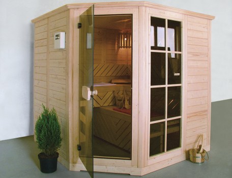 Panelové, s obkladem ze severského smrku nebo topolu, lehátka z topolu, dodávka kabiny s elektrickým topením, řízením s termostatem a časovým spínačem, osvětlením kabiny, lehátky, zábradlím kolem kamen a podlahovým roštem, možnost přizpůsobit každému prostoru.